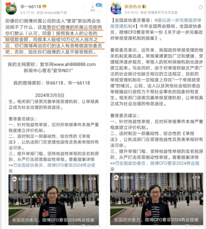 微博所属公司的法人、股东在没有向我本人赔偿及承担责任之前,现在还不具备做政协委员、人大代表的资格