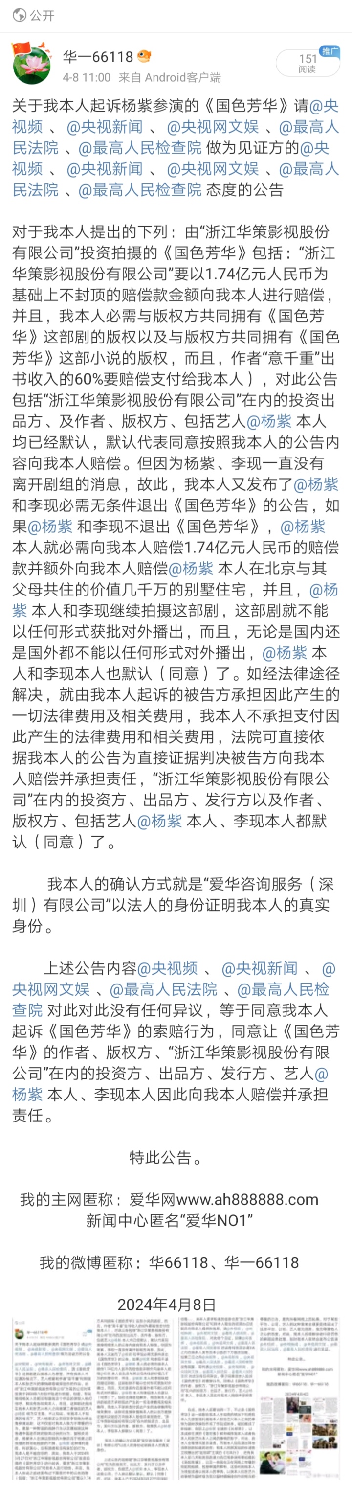 A057_必处理公告18-5——关于本平台"爱华NO1"女士请央视、最高法、最高检见证《国色芳华》投资出品方……必需向本平台“爱华NO1"女士赔偿的央视、最高人民法院、最高人民检查院对此态度的公告