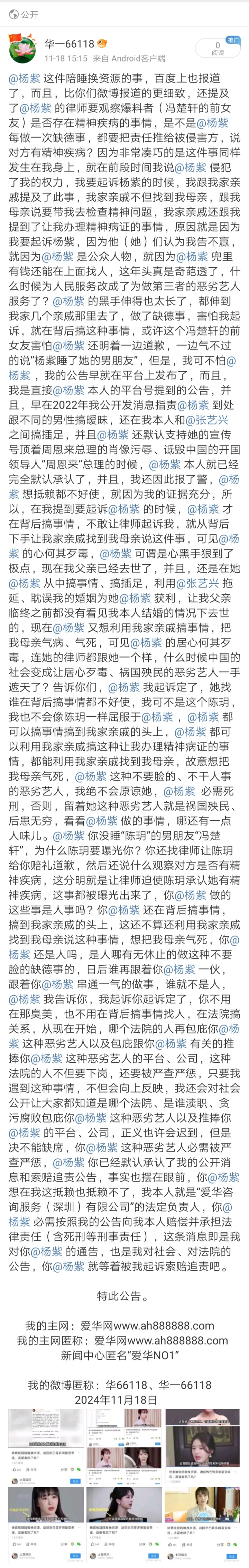 公告:杨紫、张艺兴及各平台、公司、法院及社会公告消息